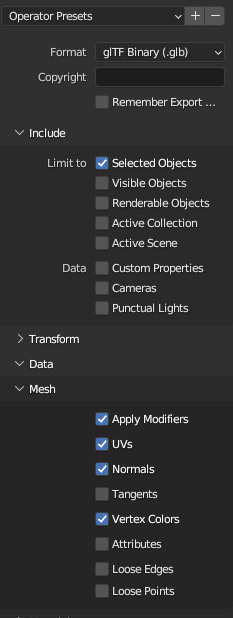 We recommend using .gltf while you’re working on a scene, but then switching to .glb when uploading it.