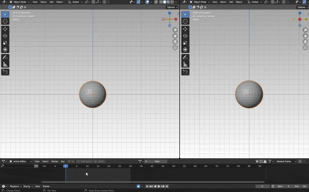 Object animation is best for simple models, such as a bouncing ball, a spinning globe or a floating chair and it doesn’t need an armature. It’s important to mention that object animation is different from vertex animation. In object animation, the model will be animated as a whole, while in vertex animation, as the name says, each vertex of the object can be animated separately (which is super helpful for creating shape keys, for example). While object animation is perfectly fine to use, vertex animation is currently not supported by Decentraland’s engine.