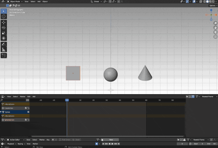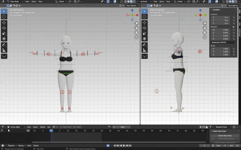 - Go to Pose Mode and make sure you have the Dope Sheet > Action Editor tab open and click on New to add an animation clip.