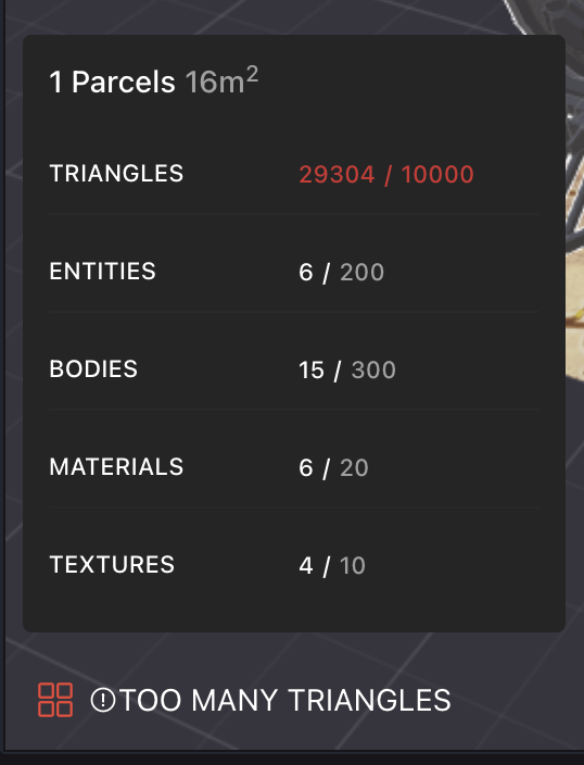 Keep in mind that many players may be visiting Decentraland using hardware that is not built for gaming, and via the browser, which limits how much of the hardware’s processing power is available to use. The experience of visiting your scene should be smooth for everyone.
