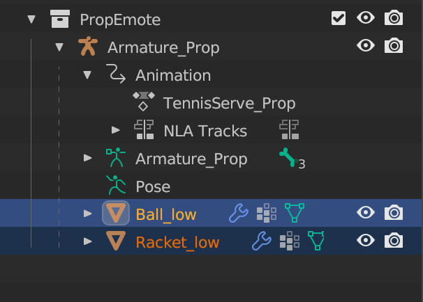 In order for all the animations to be exported, the clips should be added to the NLA Tracks. Make sure there’s only one animation clip for the avatar and another one for the prop, they must have the exact same number of frames.